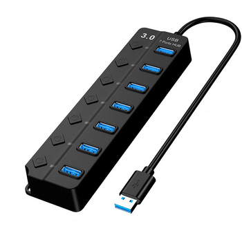 7 puertos USB 3,0 HUB con interruptor de encendido/apagado y LED de alimentación 7 en 1 USB 3,0 Splitter 5Gbps Velocidad
